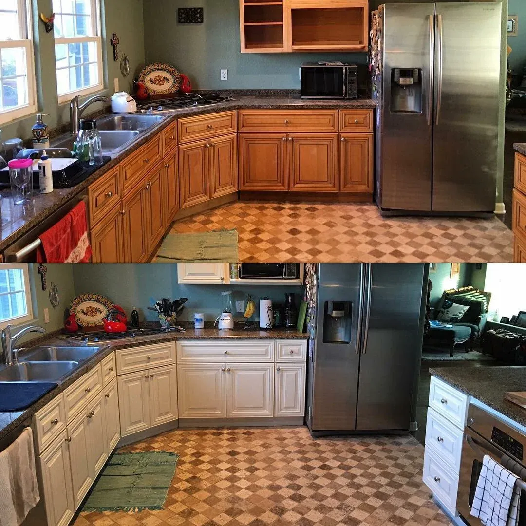 before cabinet paintingAfter cabinet painting results